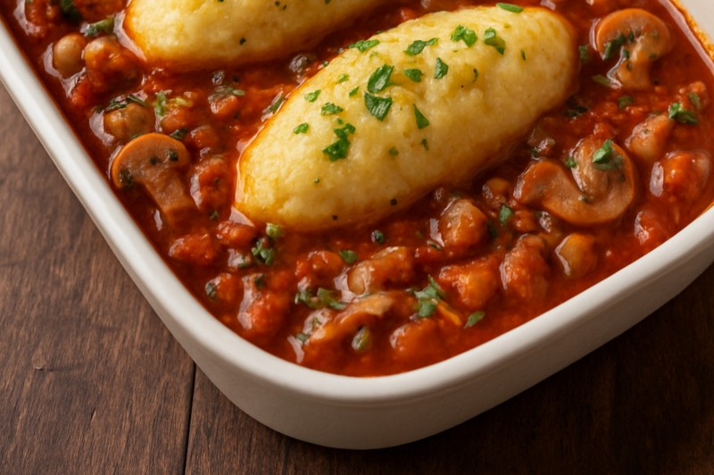 Enfournez à 180°C pendant environ 20 minutes, jusqu’à ce que les quenelles gonflent légèrement et s’imprègnent bien de la sauce.