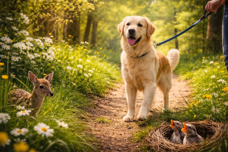 ➡️ Sur un sentier, votre chien peut rester libre… à condition d’être sous contrôle.