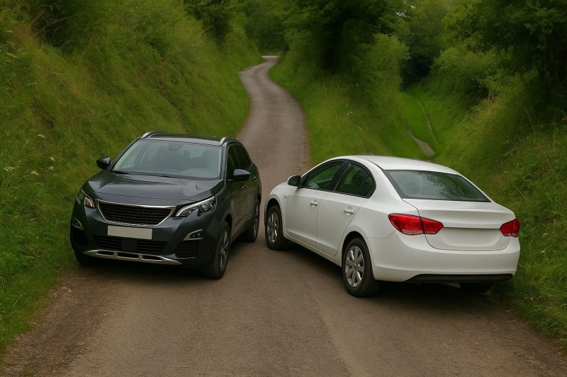 Si vous descendez une route étroite et qu’un véhicule monte en face : vous devez vous arrêter et le laisser passer.